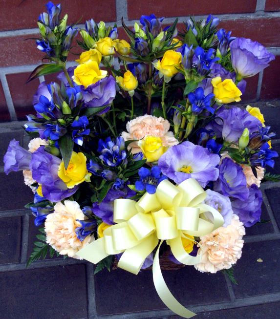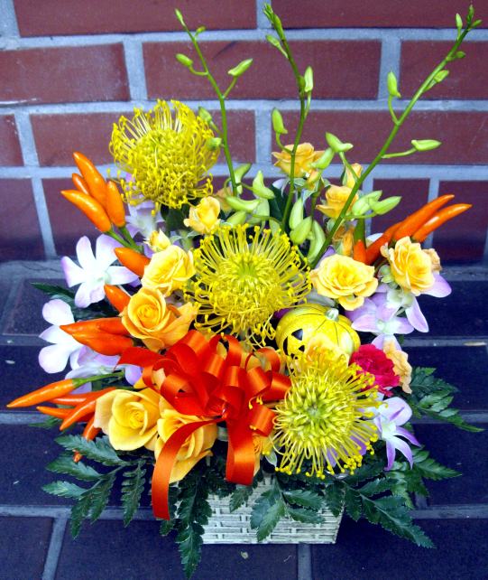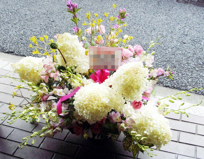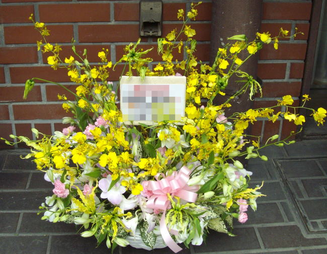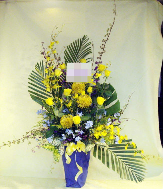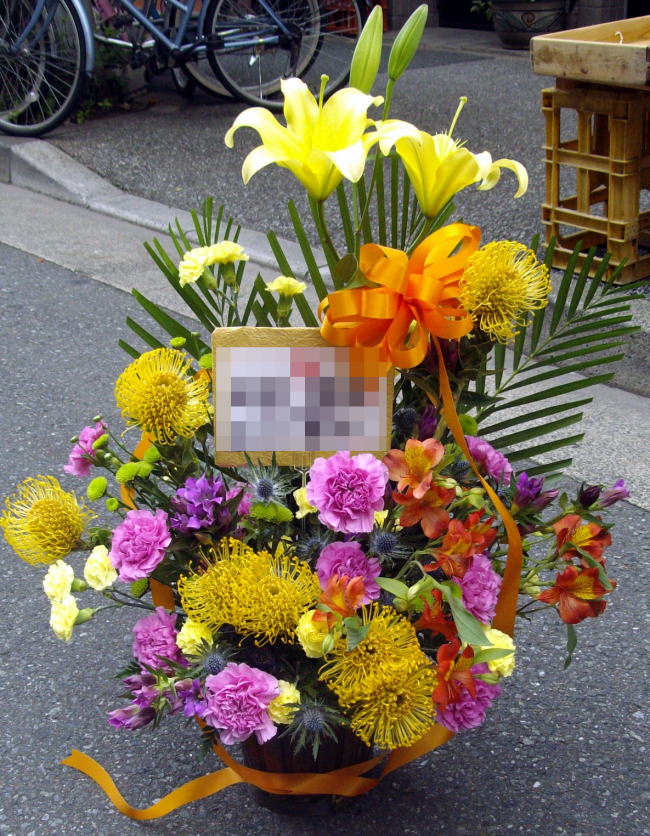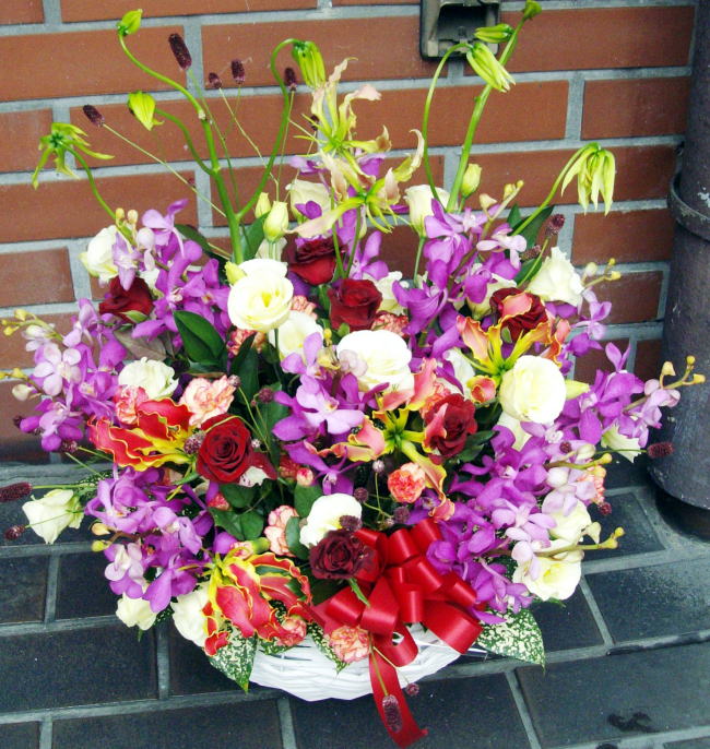 楽屋花や、お誕生日、お見舞い等、どの場面でも重宝します。何にしようか悩む場合は、アレンジがオススメです。季節の花を贈りましょう。可愛らしくや、大胆に、変幻自在なところがアレンジの特長です。 ※注意事項 (全て税別表記です) こちらでご紹介している作品は、2010年10月にお届けした作品例です。 サンプルイメージですので、時期・場合によっては花材が揃わない場合がございますので御了承ください。 サンプル商品写真をクリックして頂くと、大き目の写真が見られます。 サンプルの型番: P(ピンク)Y(黄色)OR(オレンジ)V(紫)B(青)R(赤)の略です。SPはスプレー咲きの略です。例:PSPカーネ・・ピンクスプレーカーネーション |